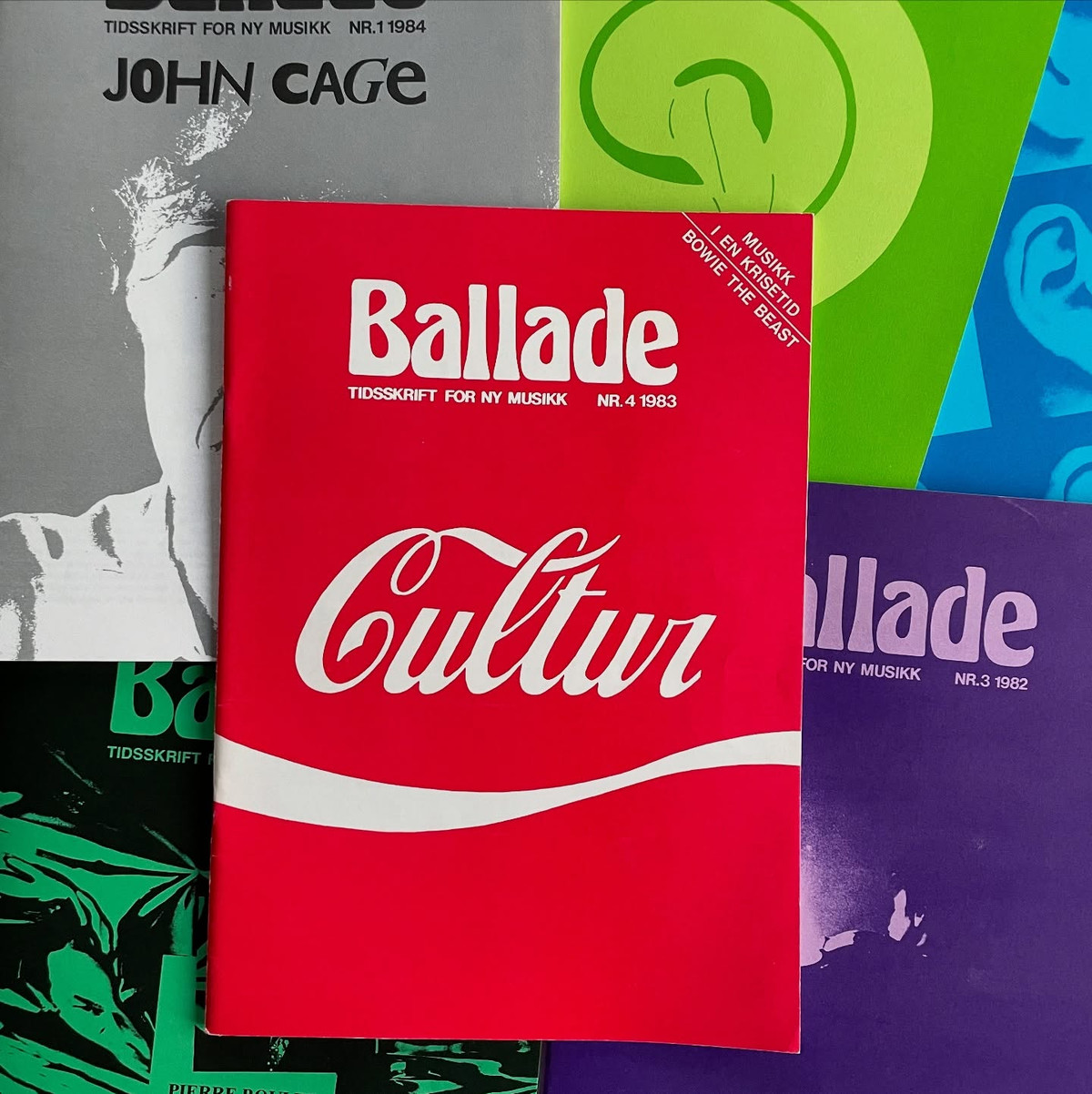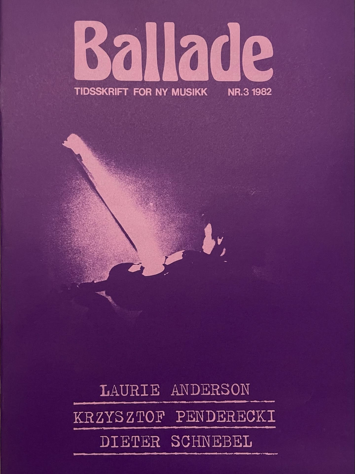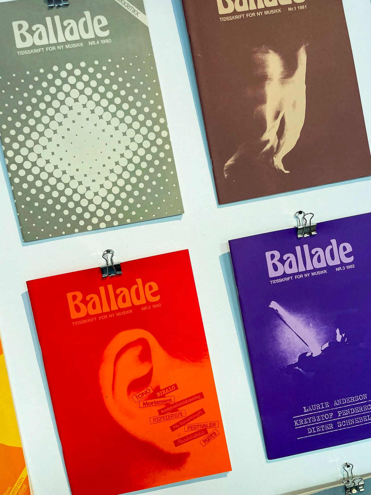 In 1977, composer and writer Synne Skouen launched “Ballade. Journal for ny musikk” with the association Ny Musikk as publisher. Visual artist Terje Roalkvam, educated at the Statens Håndverks- og Kunstindustriskole in Oslo and the Academy of Fine Arts in Warsaw, was attached to the editorial staff as graphic designer from the first issue. He remained responsible for Ballade’s design throughout Skouen’s editorship until 1986.